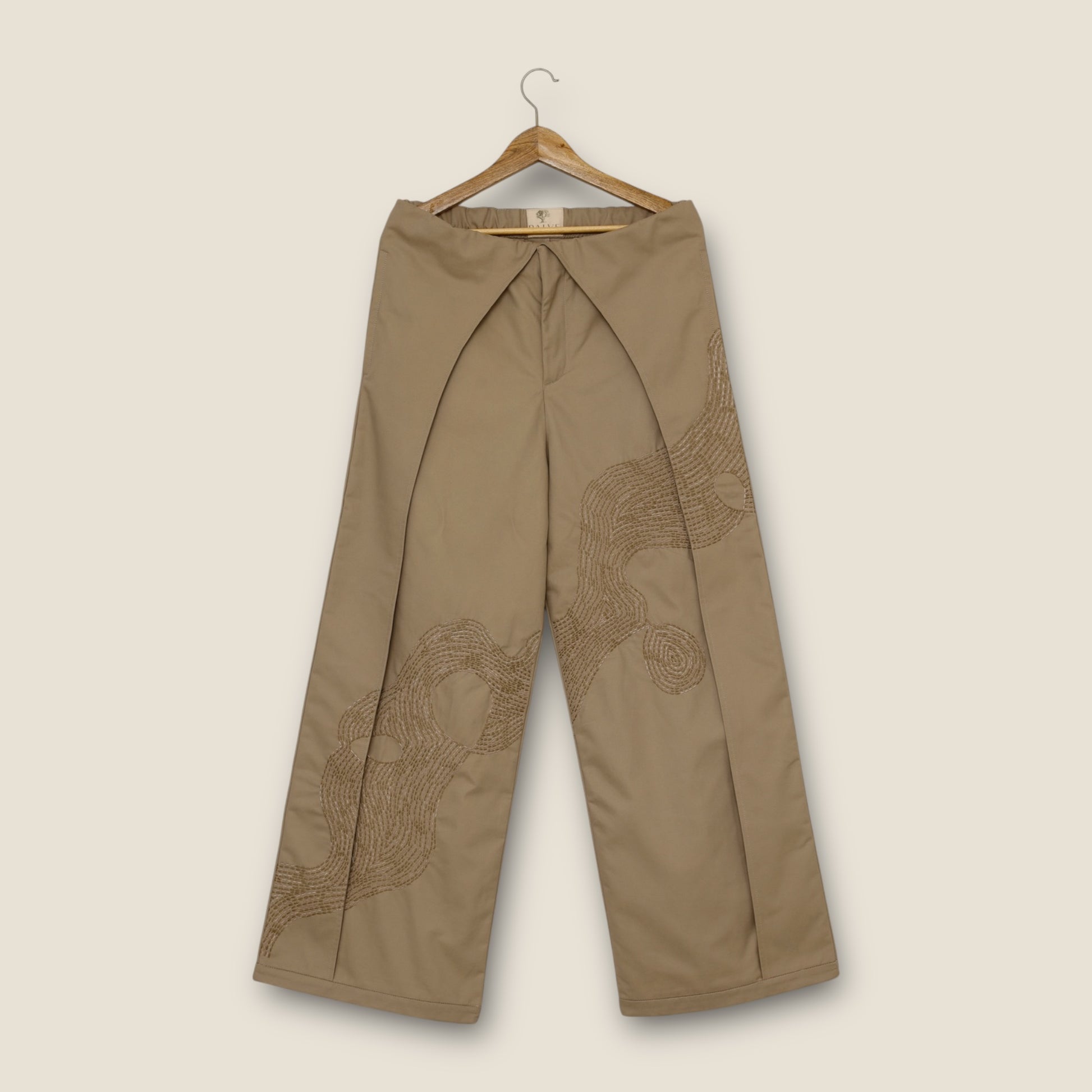 A poetic blend of architecture and craft, these wide-leg pants reinterpret comfort through structure and storytelling. The double-layered silhouette, inspired by Mughal arches, creates sculptural dimension and fluid movement.